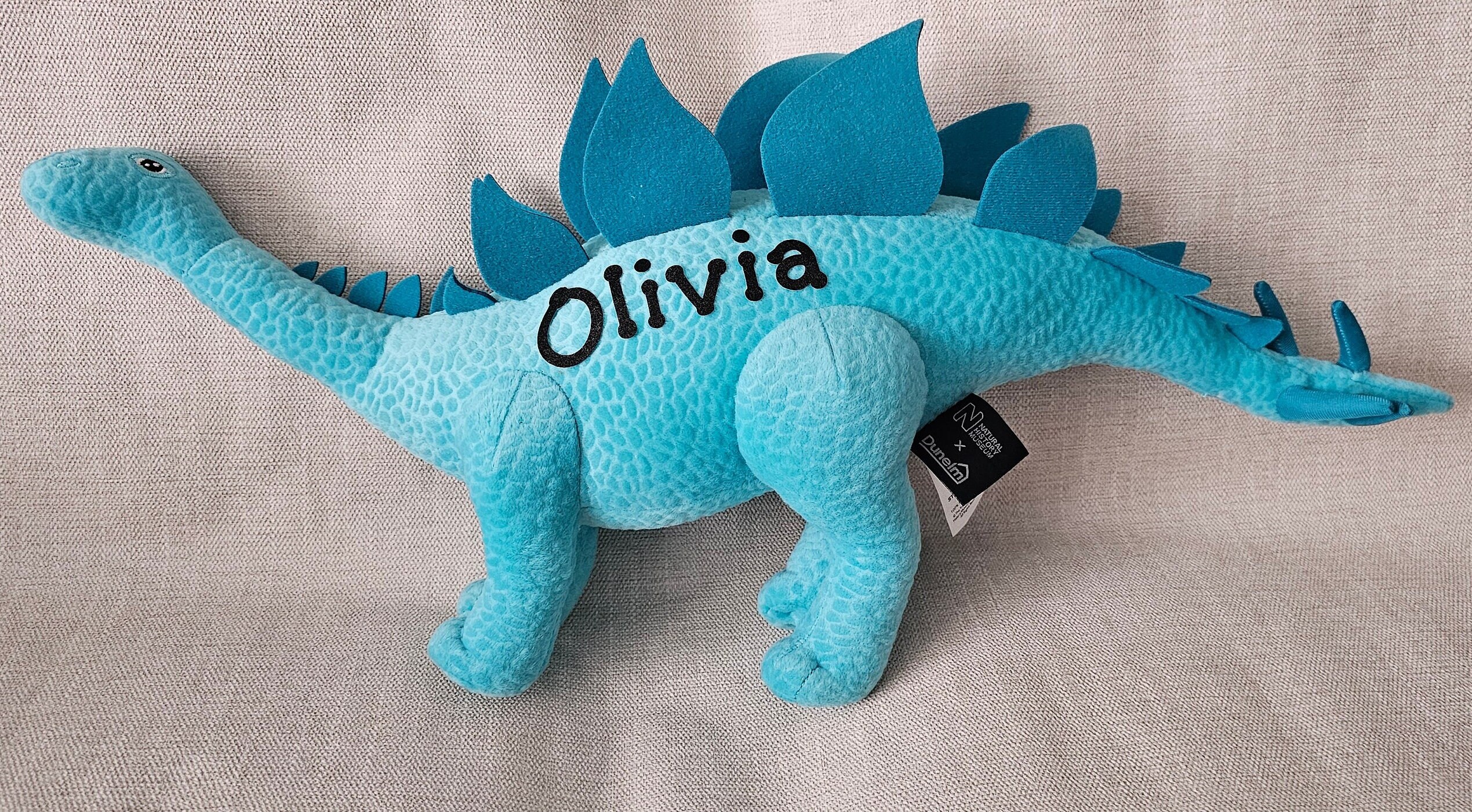 Made by the 'Natural History Museaum' the Dinosaur measures 65cm long by 30cm high, and it's sure to become a treasured companion. Don't miss out on this wonderful opportunity to give a one-of-a-kind personalised gift that your child will adore and keep forever.
